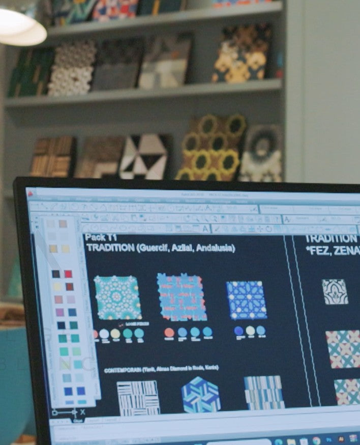 Le bureau de design propose les motifs et couleurs. Livraison de simulations et des plans d'exécution sur lesquels se baseront les Maâlems