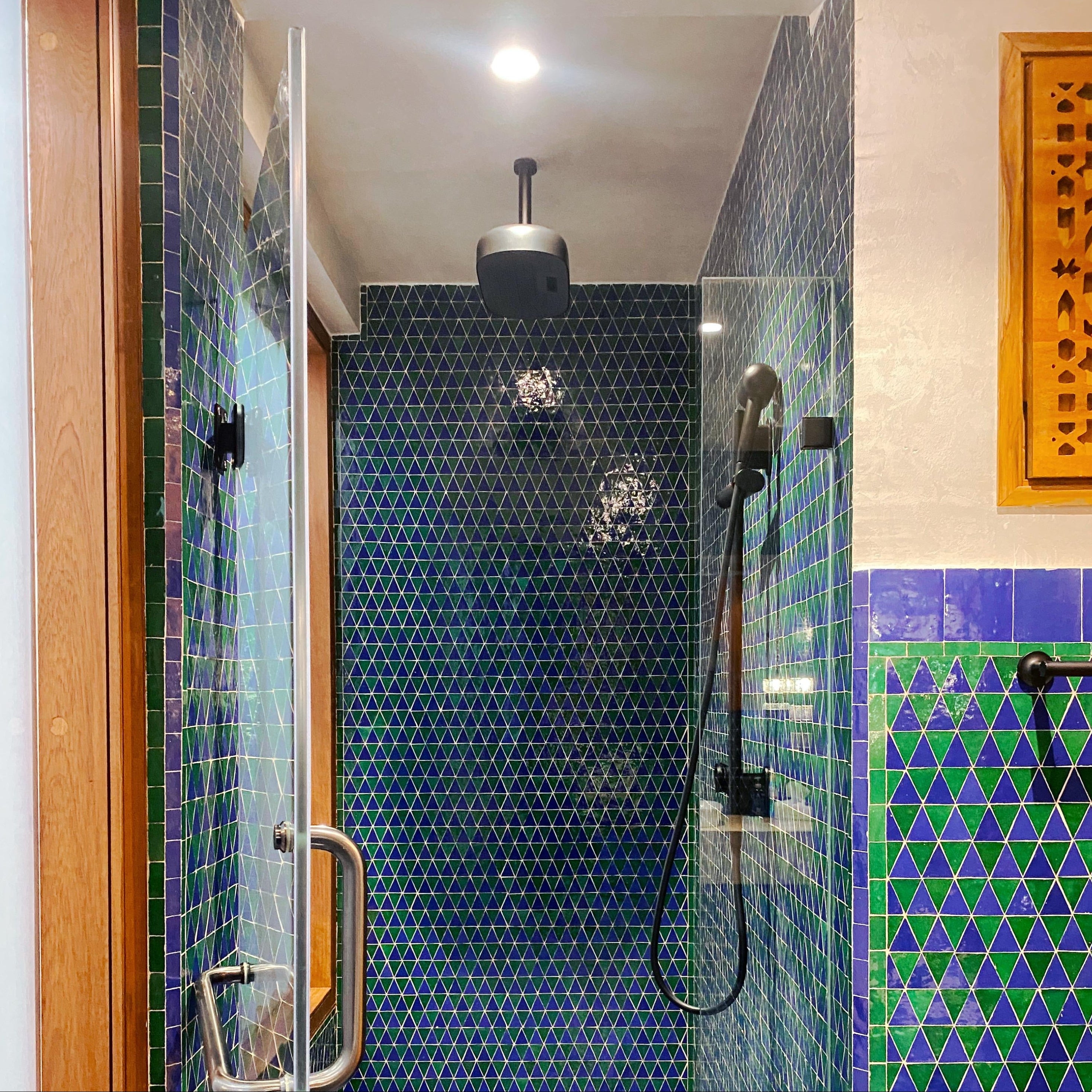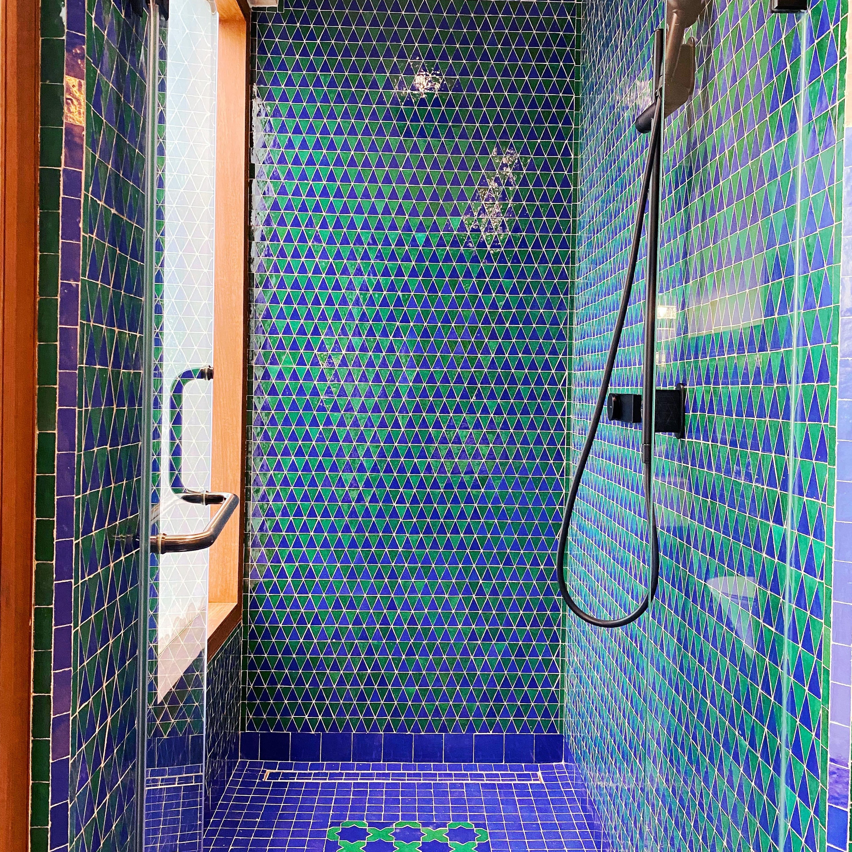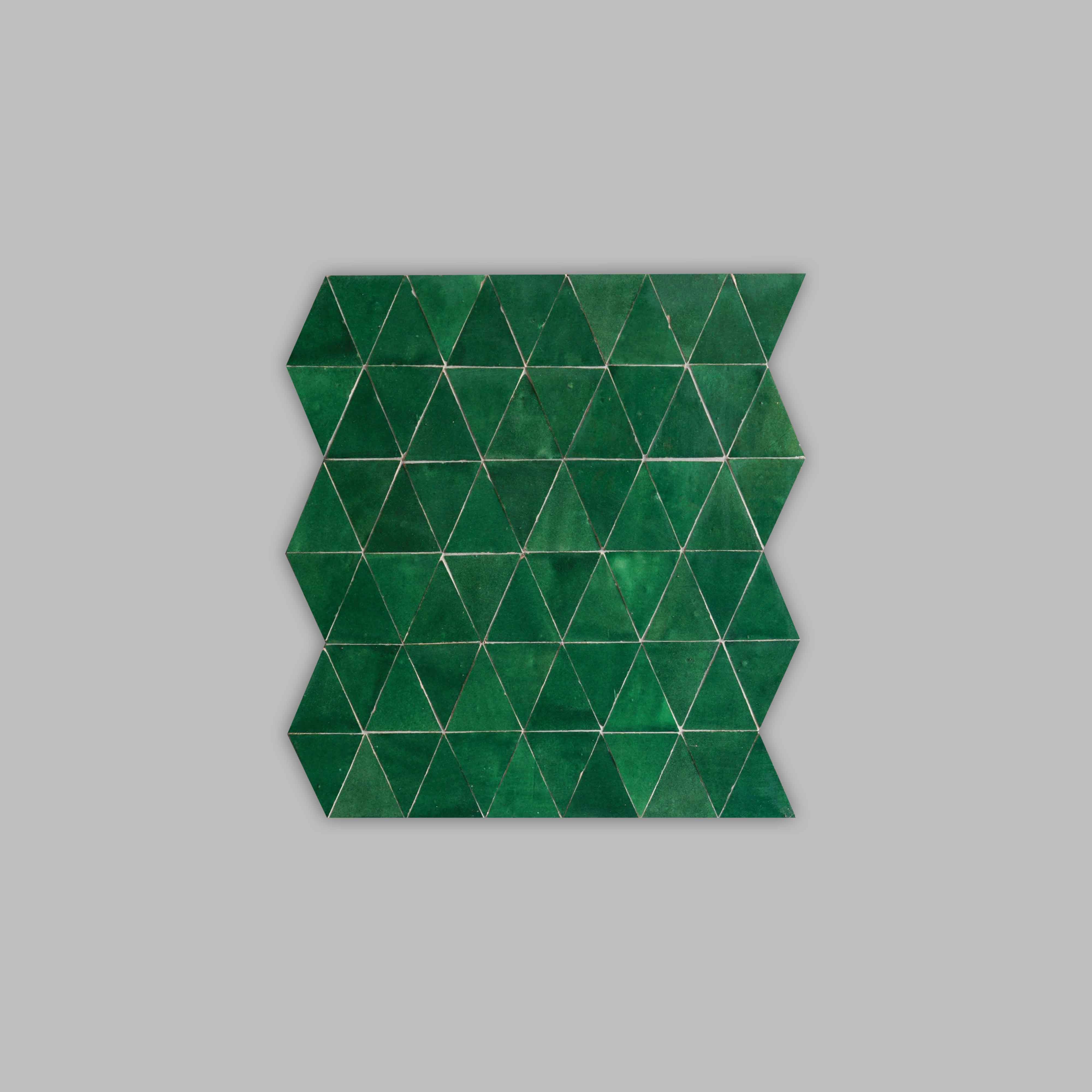 SEFROU est une plaque de mosaïques pré-assemblées et émaillées à la main. S'installe facilement aux sols comme aux murs, en intérieur comme en extérieur. Une composition de triangles équilatéraux pour un rendu géométrique.