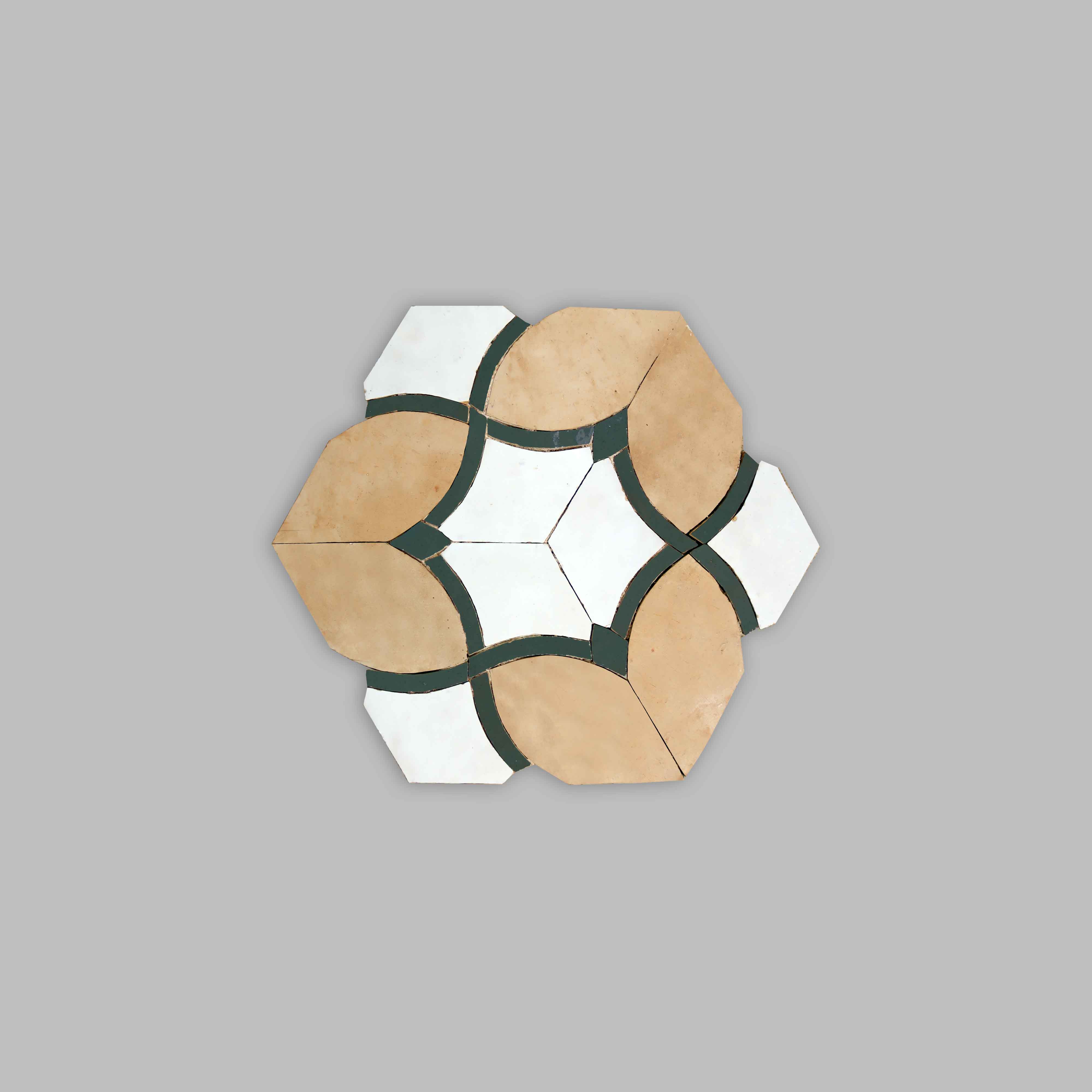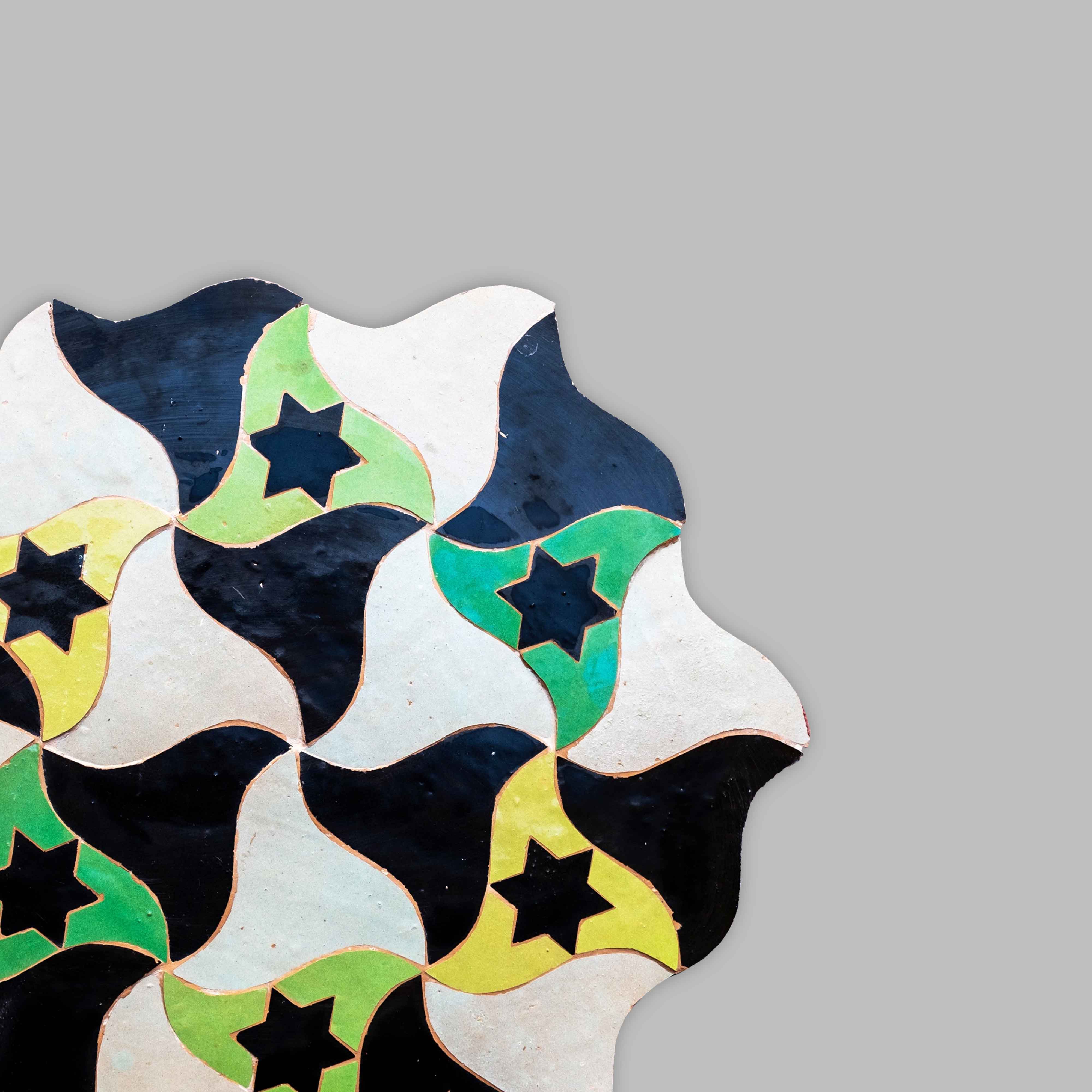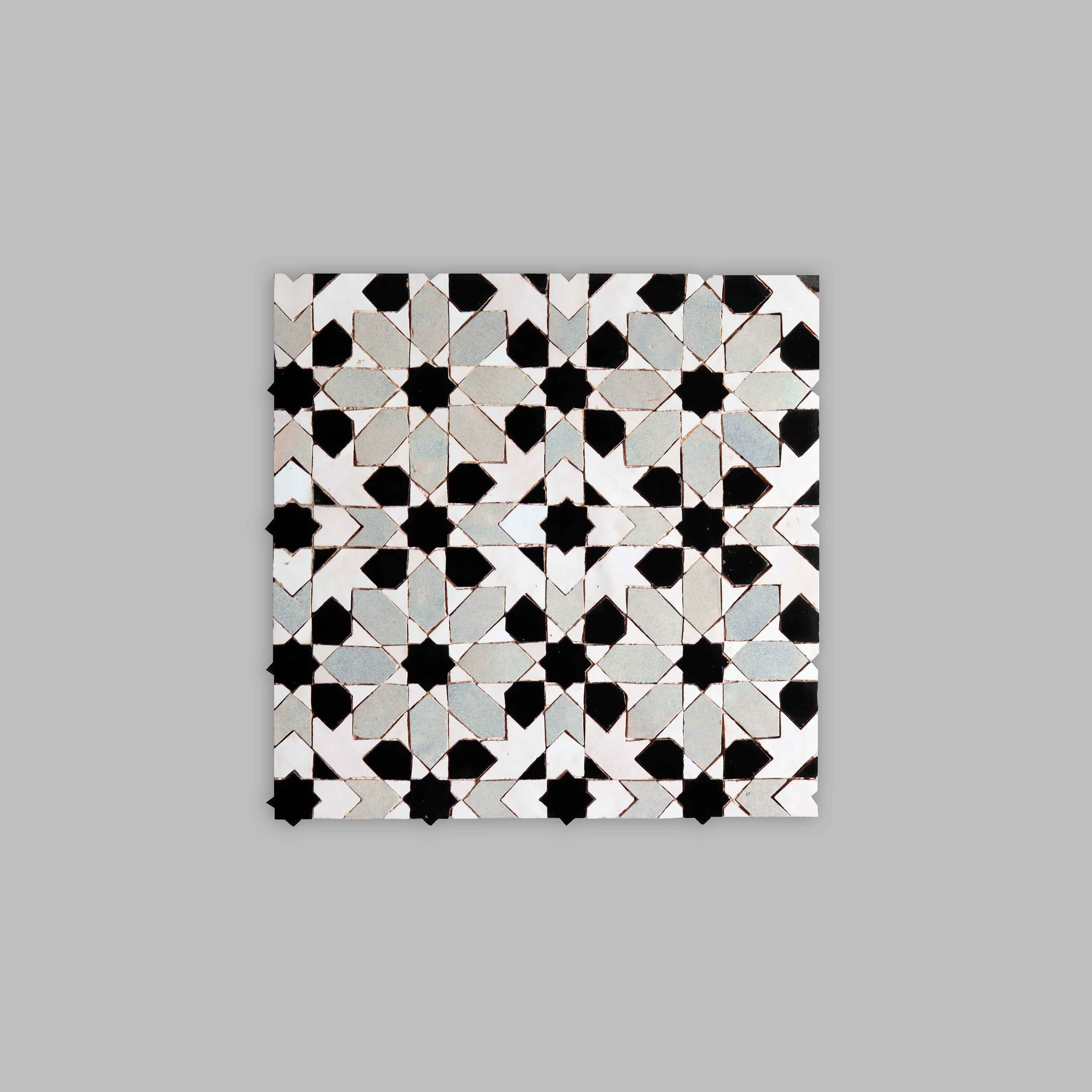 The "Classics" collection lists all the essential motifs of Moroccan zellige. Deeply rooted in Moroccan architectural heritage, these motifs, such as the iconic "Oulmès," are revisited by Aït Manos to create spaces that are a nod to Moroccan tradition without neglecting a contemporary feel. Thus, sometimes used in their original form, sometimes twisted into monochrome, these motifs are reborn within the Aït Manos Workshops for a decoration with a unique cachet.